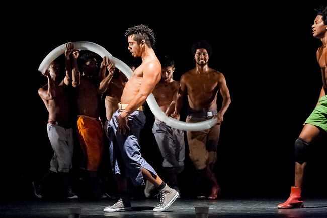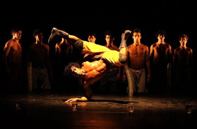 Les interprètes diluent et mélangent sans aucun complexe hip-hop, capoeira, samba, musique électronique et bossa nova pour faire émerger une danse aux acrobaties époustouflantes, bourrée d’énergie et d’invention…