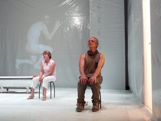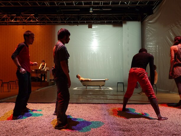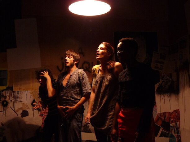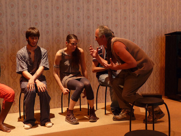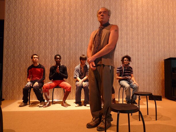 Six acteurs, une infirmière, du son produit par des machines et les acteurs, des fulgurances de mots, un espace labyrinthique (lieu de mémoire et de futur). Ces visions, ces rêves se concrétiseront avec Véronique Dubin, Catherine Laval, Stéphane Naigeon, Juliette Fernet, Matthieu Grenier, Baptiste Jamonneau, Laetitia Lalle Bi Benie, Aurélien Serre, Annie Vey, le Groupe MOI (Vincent Delpeux, Bertrand Saugier, Yoann Tivoli). D’après les textes d’Antonin Artaud (Editions Gallimard) suivants : « Pour en finir avec le jugement de Dieu » « Van Gogh, le suicidé de la société » « Conférence du Vieux Colombier » « Le Pèse-Nerf » « L’Ombilic des limbes » « Le théâtre et son double ».