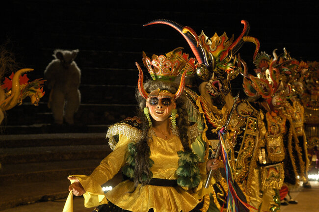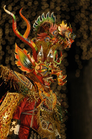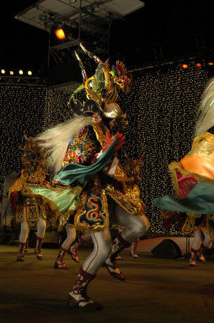 Le carnaval est indissociable de la réalité en Amérique latine. Dans presque tous les pays, c’est une période de fêtes intenses, de libérations et de libations en plein cœur de l’été. Le Brésil et ses folies de Rio, Salvador ou Recife, s’impose comme l’image dominante. Mais pour cette 10e édition, la Biennale a voulu vous entraîner à la découverte de deux carnavals telluriques en Colombie et en Bolivie. Inscrit au Patrimoine mondial (oral) de l’humanité, le carnaval d’Oruro (Bolivie) est une superbe fête populaire, incroyable mélange de religieux et de profane. Pendant près de vingt heures, des dizaines de milliers de danseurs défilent au son des bandas de l’altiplano. Pour les représenter, une diablada aux masques et costumes éclatants de couleurs et de broderies et la Danza del caporal , très physique création des années 1960. Au nord de la Colombie, le carnaval de Barranquilla est lui aussi une extraordinaire fête populaire avec ses couples de cumbia, ses danses congos et son envoûtante musique caraïbe. Au total cent soixante dix danseurs et musiciens pour une nuit inoubliable dans les jardins de Fourvière.