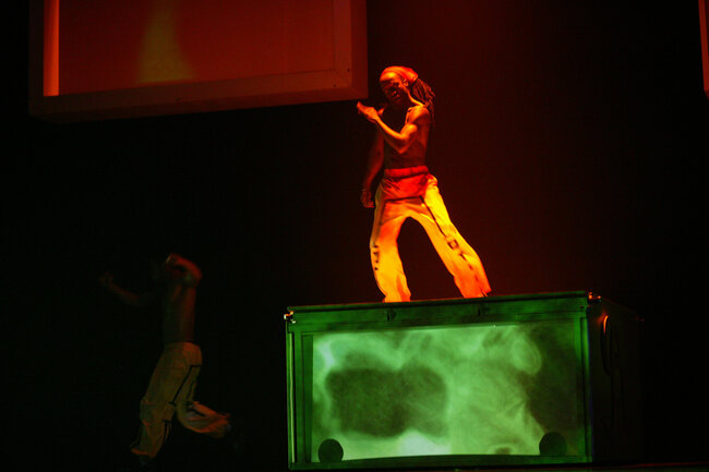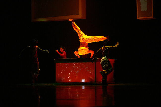 Pour cette pièce, Mourad Merzouki travaille sur le graphisme des corps, des mots, des objets, sur la beauté ou encore sur la complexité du mouvement.