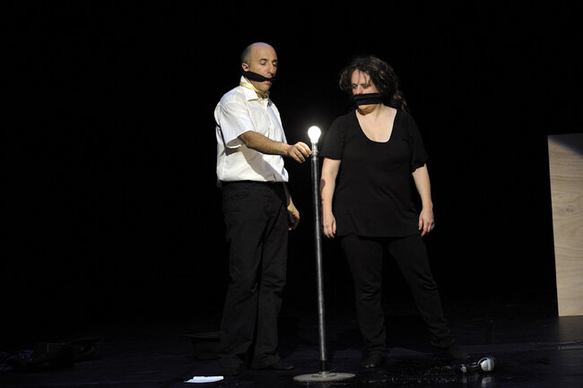 Et... comme, dans l’ensemble, ils restent bouche bée face au monde qui les entoure mais qu’on ne leur a pas encore cloué le bec, ils ont décidé que ce n’était pas parce qu’ils restent sans voix qu’il n’y a plus rien à dire. Après de nombreux spectacles sur le langage, le choc des langues, après des monologues, des luttes de classes pour un mot de trop, des scènes de ménage pour un mot qui manque : se taire. Commande d’un texte est alors passée à l’auteur fidèle et téméraire de la Nième : Rémi Rauzier.