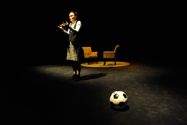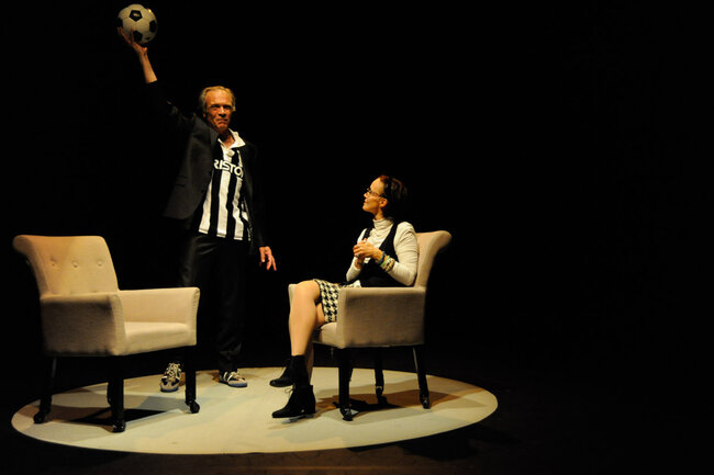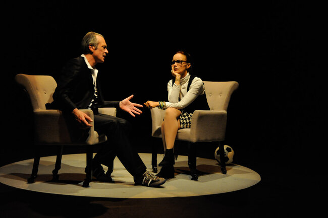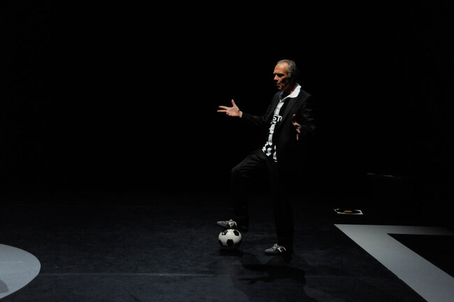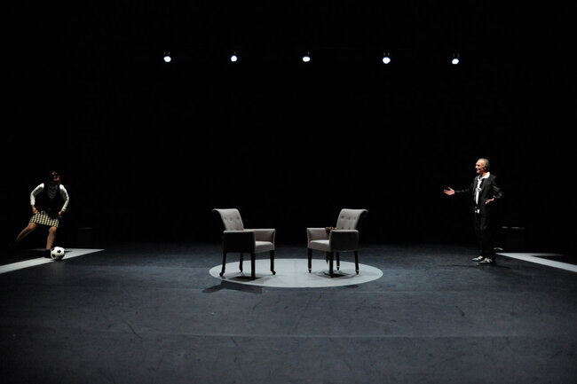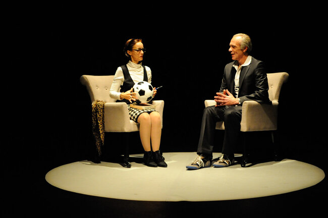 En décembre 1987, une rencontre entre deux artistes, un écrivain et un footballeur, est organisée par le journal Libération. L’écrivain c’est Marguerite Duras, qui vient d’écrire L’Amant. Le footballeur c’est Michel Platini, qui vient d’écrire Ma vie comme un match. Marguerite Duras interroge et s’interroge sur Platini. Michel Platini répond avec lucidité et humour, en « dribblant » avec intelligence. Vingt-cinq ans plus tard, le théâtre devient le terrain de jeu de cette rencontre improbable entre un mythe de la littérature et une légende du football.