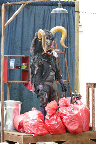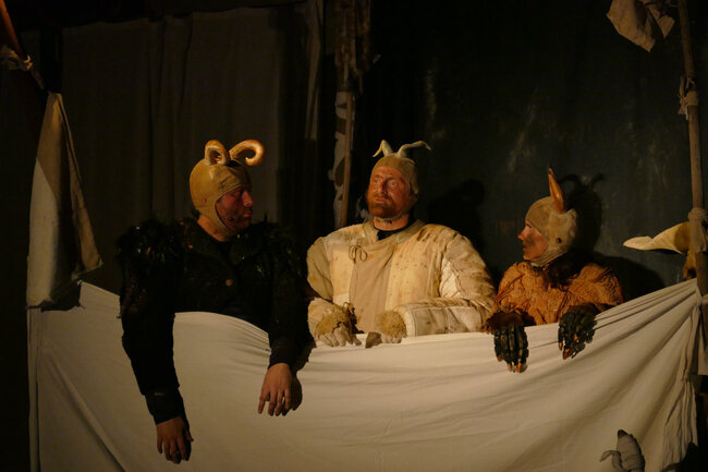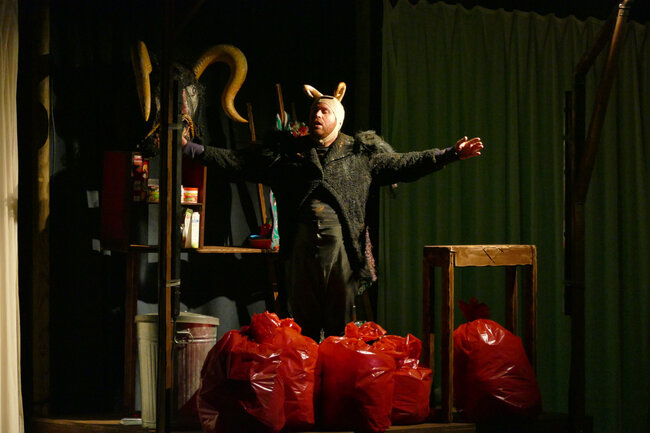 Avec Festum, la compagnie Les Transformateurs interroge la nécessité qu’éprouve l’être humain à se défaire de l’habit du quotidien pour se vêtir d’accoutrements, d’oripeaux, de déguisements et ainsi permettre à ses pulsions et une certaine sauvagerie de s’exprimer.
