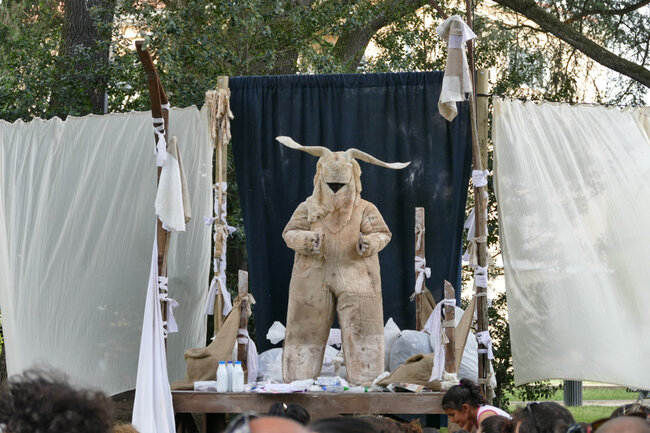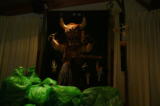 Avec l’implication de complices amateurs, le public est d’abord invité à participer à une déambulation avant de se réunir pour une veillée… monstrueuse !