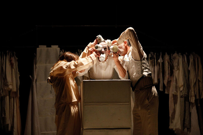 Goldfish is an intimate journey into the imaginary. A journey that transforms the tiny details of life into whole new worlds those are full of humor and poetry. The eroding routine of life turns sweet and rich, as the chains of the imagination are cut loose. Then, like the stroke of a paintbrush, through the bodies and the talent of the actors and dancers, we find ourselves in a fantasy in which there are endless possibilities. The uniqueness of the show is found in the combination it makes between the arts of dance and theater. It is a show that is full of magic, creativity, humor and beauty, in which members of e all age groups shall take pleasure.