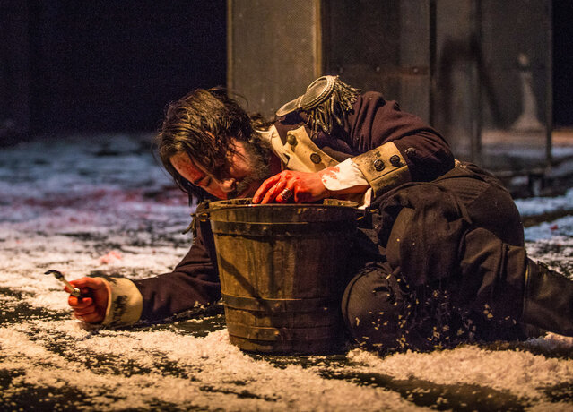 Marche de mort sous la neige, où le froid ajoute encore à l’austérité des épreuves, et le sang versé vient rappeler, rouge sur blanc, la signature d’un pacte infernal.