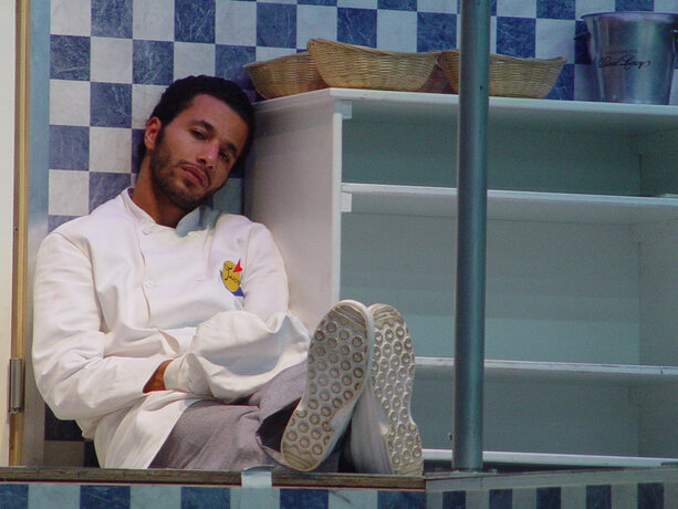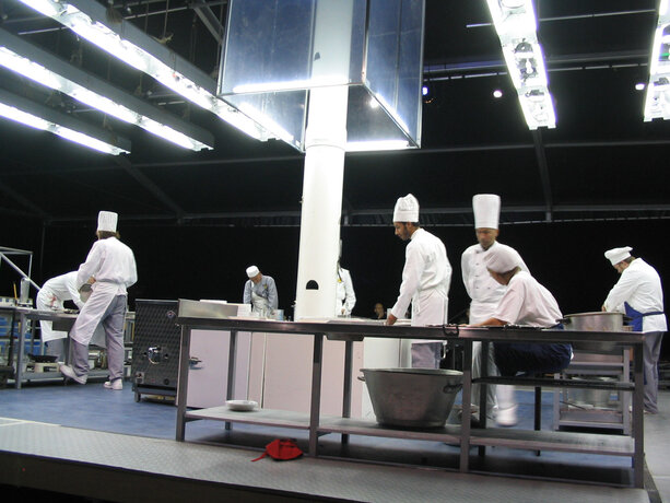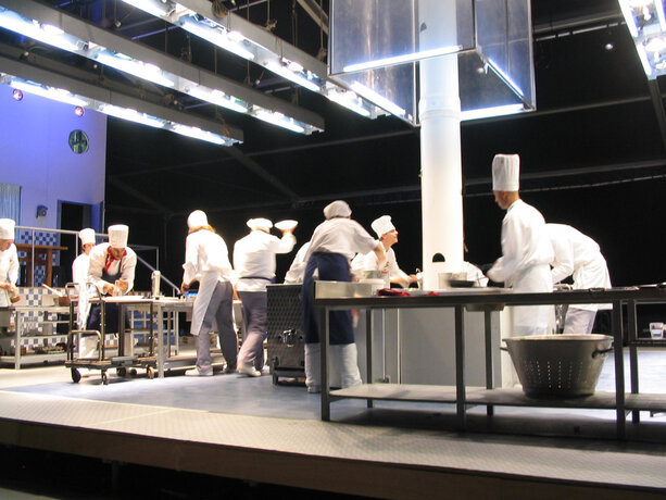 Prenez l’immense cuisine d’un grand restaurant au moment où tous les cuisiniers, pâtissiers, serveuses, marmitons, sommeliers, chefs de rang, bouchers, s’affairent à concocter ou servir des plats savoureux.