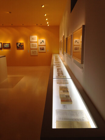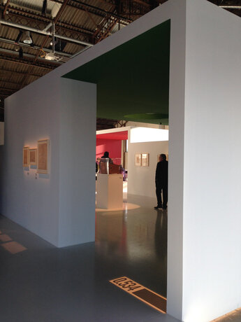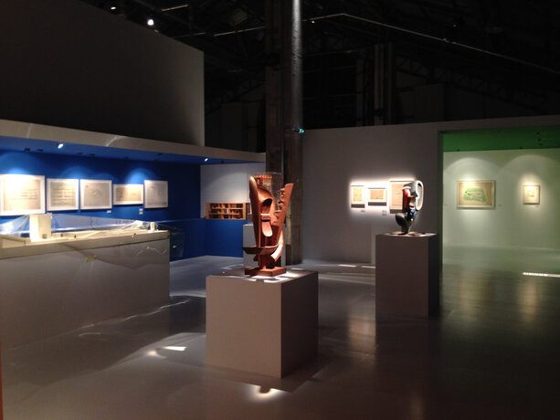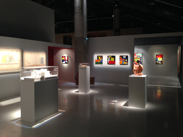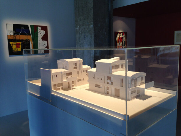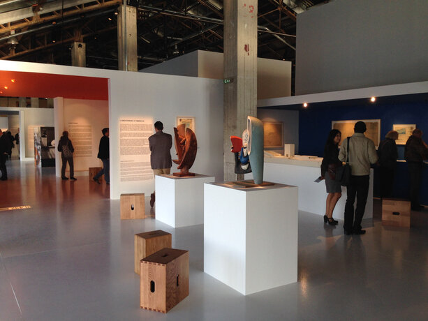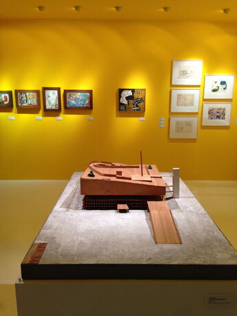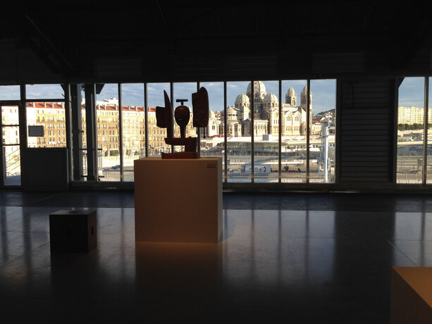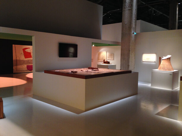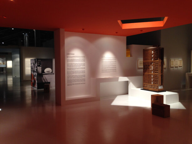 « Le parcours fait alterner une succession d’espaces, les uns ouverts comme des placettes, les autres fermés comme de petites salles. Le fil conducteur entre ces deux types d’espaces est une tablette formant une vitrine dans laquelle sont présentés des croquis, de petits dessins, des photographies et des éléments de la correspondance » explique Jacques Sbriglio, commissaire de la rétrospective phocéenne.