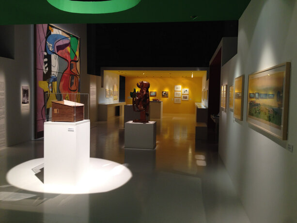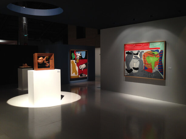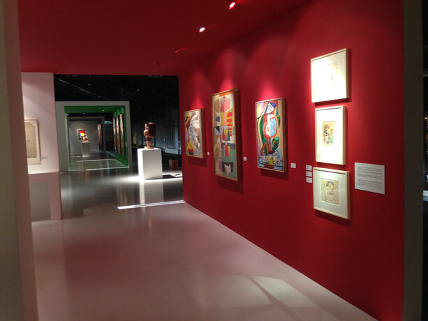 Des œuvres originales, tableaux, sculptures, tapisseries, lithographies, émaux, mais aussi des images, fixes ou animées, viennent illustrer la « synthèse des arts » chère à cet artiste complet.