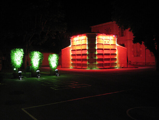 Cette intervention urbaine a été créée en écho au spectacle la Petite Insomnie, conçu pour les salles de théâtre.