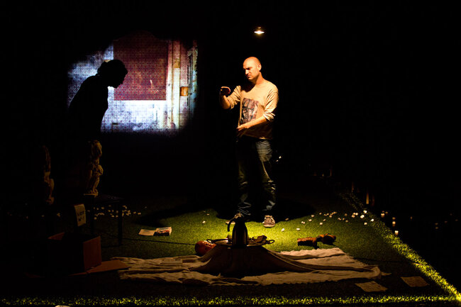 Jeu : Géraldine Berger, Simon Deletang, Stève Recollon, Angélique Clairand Scénographie : Éric Massé accompagné de Didier Raymond