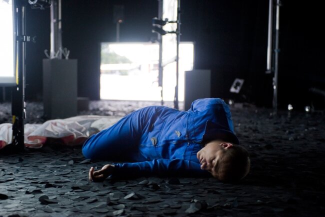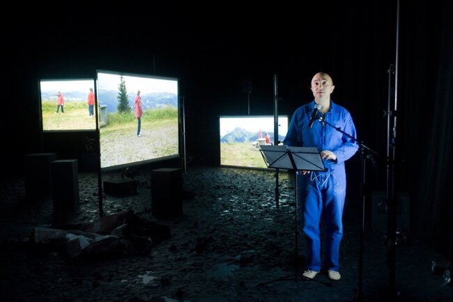 Un acteur et quatre images vidéo.