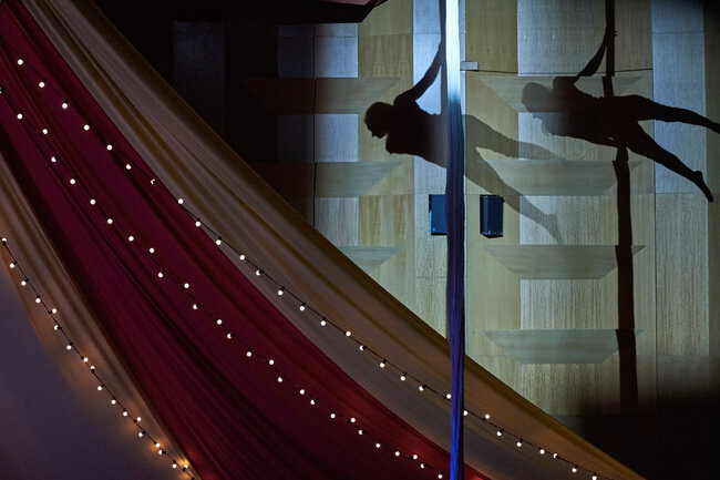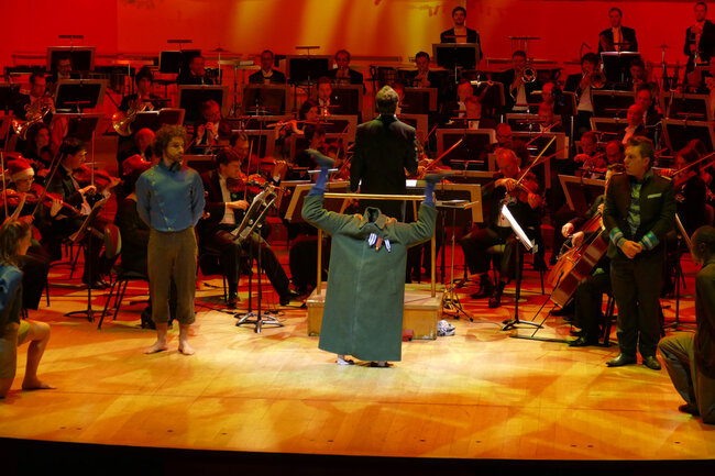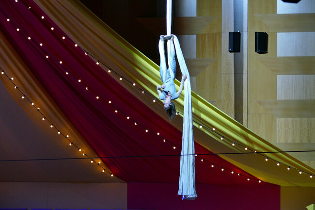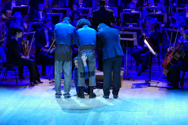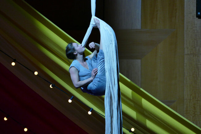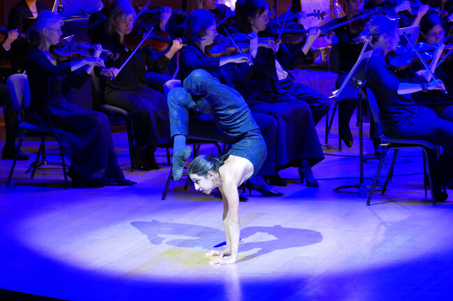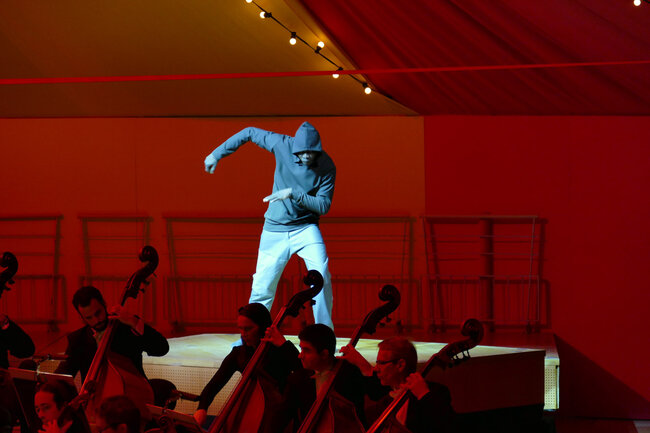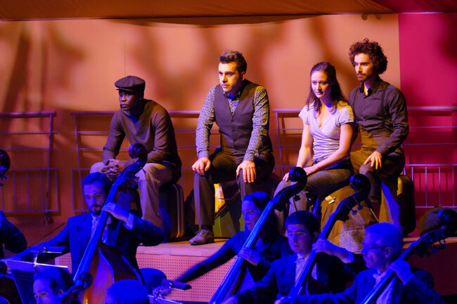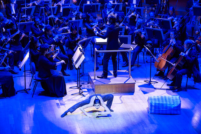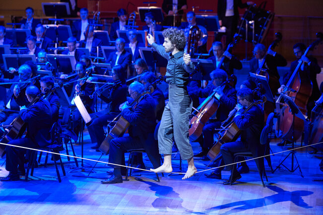 Avec : Christelle Dubois (acrobatie et contorsion), Nina Harper (tissu aérien), Max Macarinelli (jeu, clown, magie nouvelle), Rodrigue Ousmane (danse hip-hop), Théo Sanson (slackline) et L’orchestre National de Lyon.