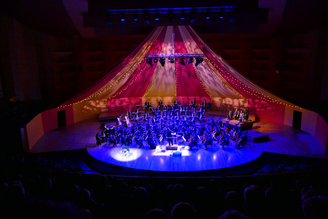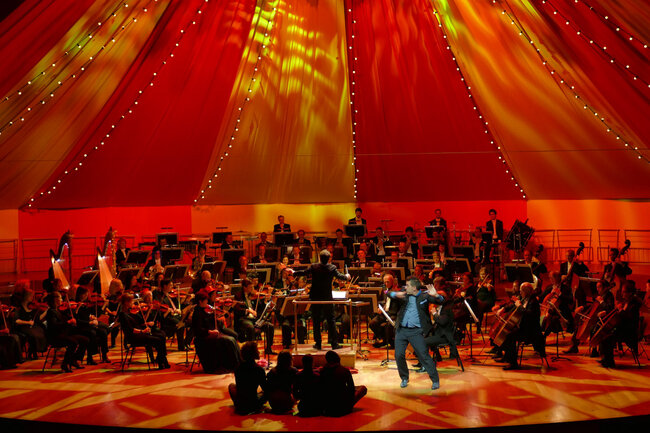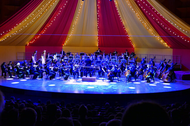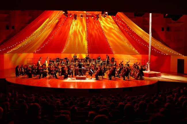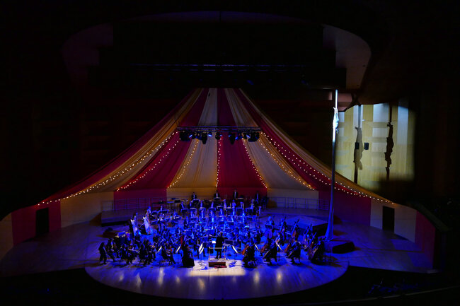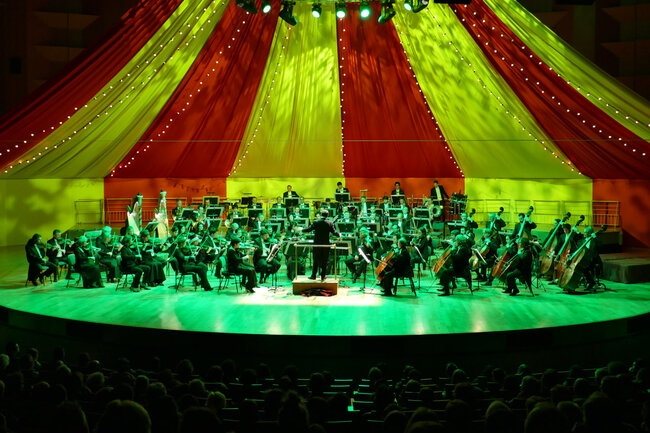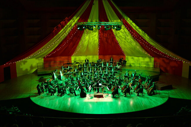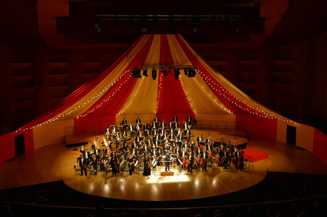 Dans la salle transformée en immense chapiteau de cirque, l’Orchestre national de Lyon fera résonner quelques-unes des pages les plus célèbres du répertoire orchestral français