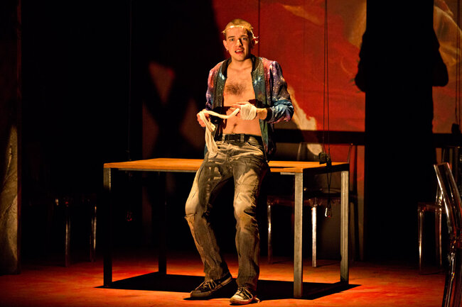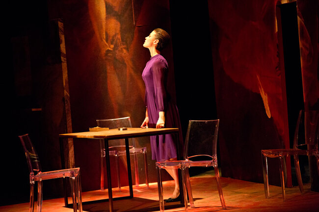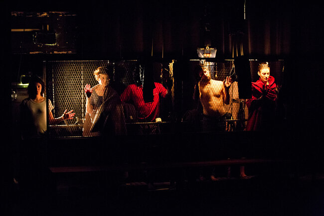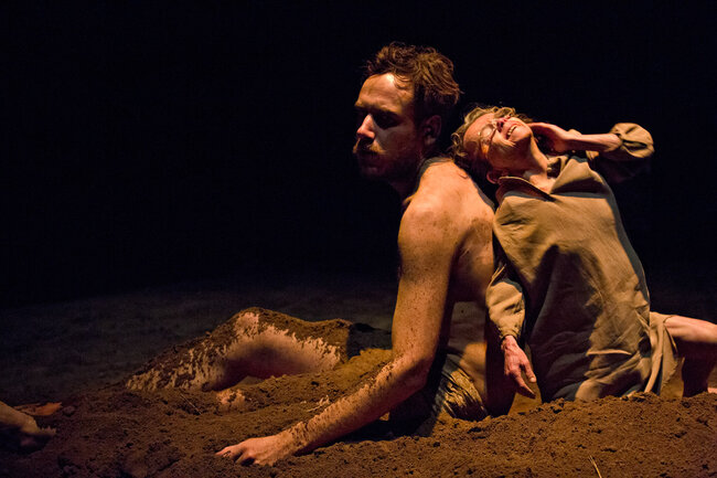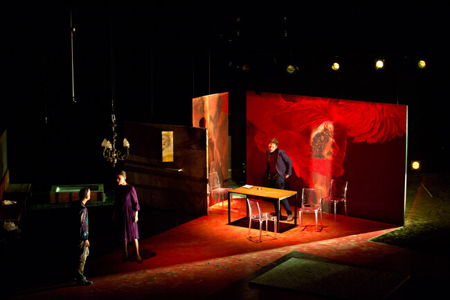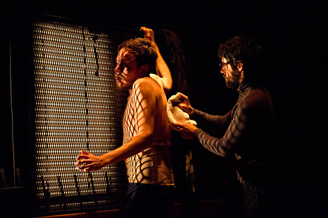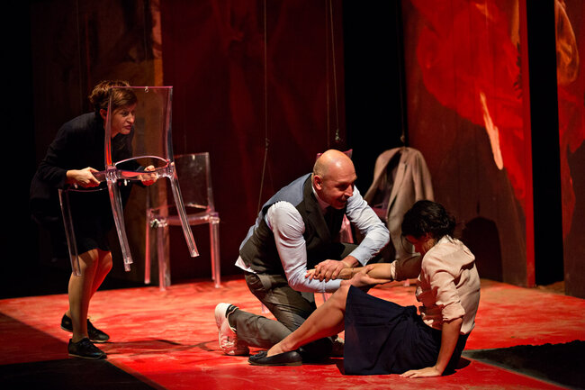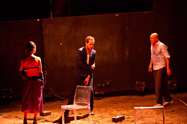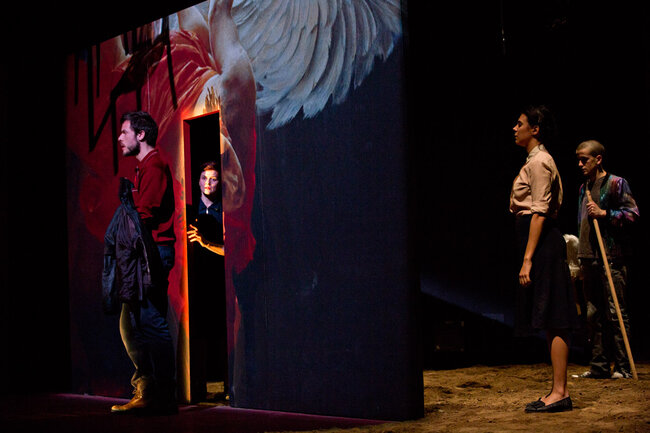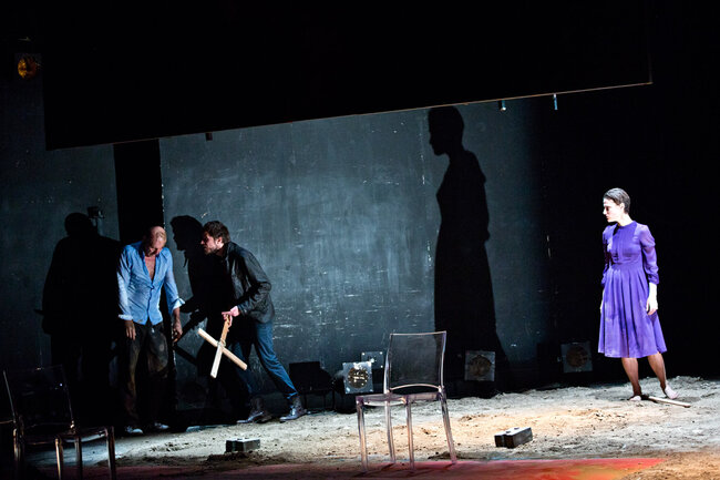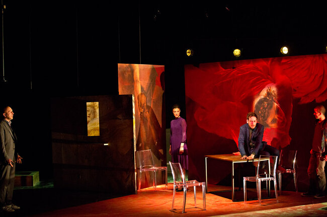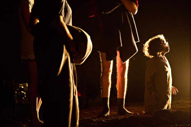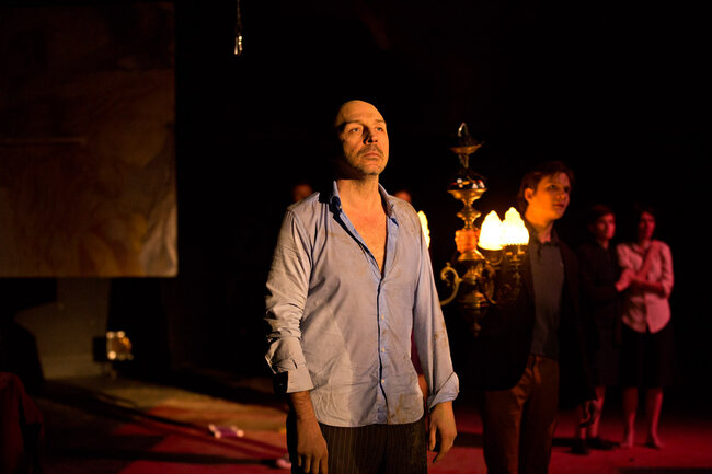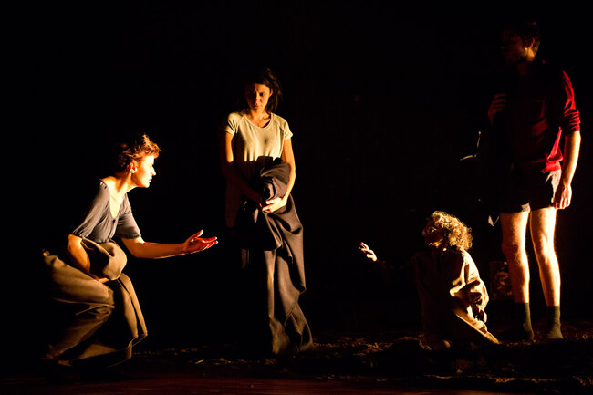 Ici, la pièce débute dans une famille de croyants, au moment de la prise de conscience par certains de ses membres que les limites ont été dépassées et que la perte de la communauté sera bientôt inéluctable. Naît alors une parole qui jusque-là a été interdite : une parole coupable. C’est cette dernière qui est passionnante et qui transforme notre écoute de la pièce tant de fois tartuffiée. Elle se délie alors par vagues de plus en plus violentes : parole d’insubordination pour les uns, de passions réprimées, exprimées ou sacrilèges, pour les autres.