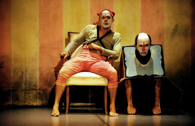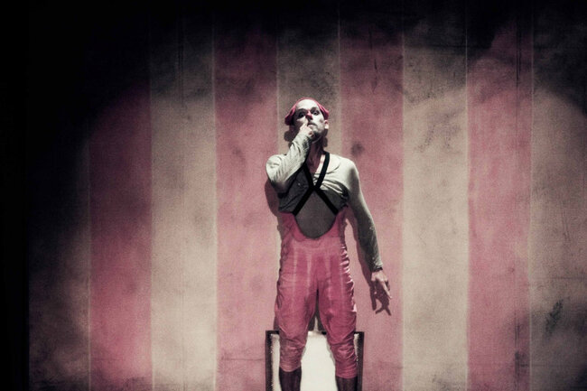 "Toros" describes two worlds that almost meet on the same stage. One – where light rarely penetrates and dancers move in different groupings, often intertwined. Like an intricate, organic machine, to the sound of Biber’s Mystery Sonata. The other – inhabited by strange, carnivalesque figures full of bravado and big dreams who play out their stories to a different sound.