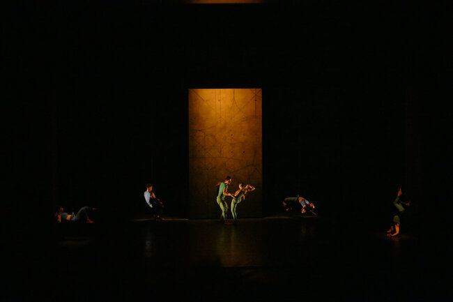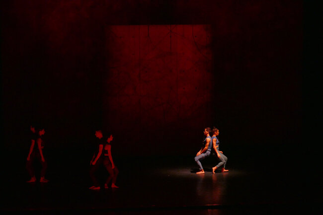 Tout semble possible, la chute comme l’élévation. Le rapport au sol, si primordial pour le danseur hip-hop, sera fondamentalement modifié. Les jeux de contacts entre les interprètes seront bousculés : le danseur pourra tour à tour être socle et porteur ou au contraire voltigeur, marionnette animée par le contrepoids de ses partenaires au sol.